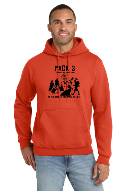 7.8-ounce, 50/50 cotton/poly fleece Air jet yarn for softness HOODIE COLOR IS REGULAR ORANGE LOGO ON FRONT AND BACK IN BLACK